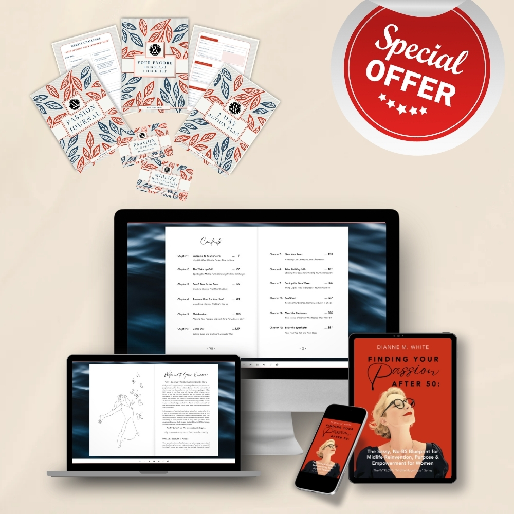 “Finding Your Passion After 50: The Sassy, No-BS Blueprint for Midlife Reinvention, Purpose, and Empowerment for Women” is all about waking up your sense of possibility, not playing small. Want to reignite your creativity? Overhaul your lifestyle? Level up your relationships? This is where you get the real talk and the real tools to build a life that makes you want to jump out of bed in the morning.